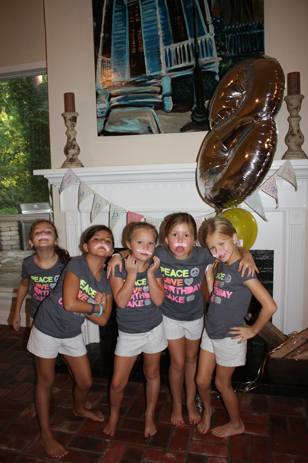 Elise really wanted a sleepover for her 8th birthday- and we so agreed that if she kept it small we could do it. I had a lot of fun planning out the night for them. Like most 8 year olds, Elise likes anything neon and funky with peace signs. I found these fun shirts on clearance for less than $4 at Old Navy and so that was the theme we went with!!!